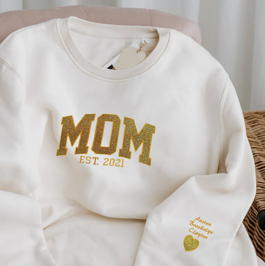 Custom Embroidered Mama Hoodie Sweatshirt T-Shirt with Name On Sleeve
