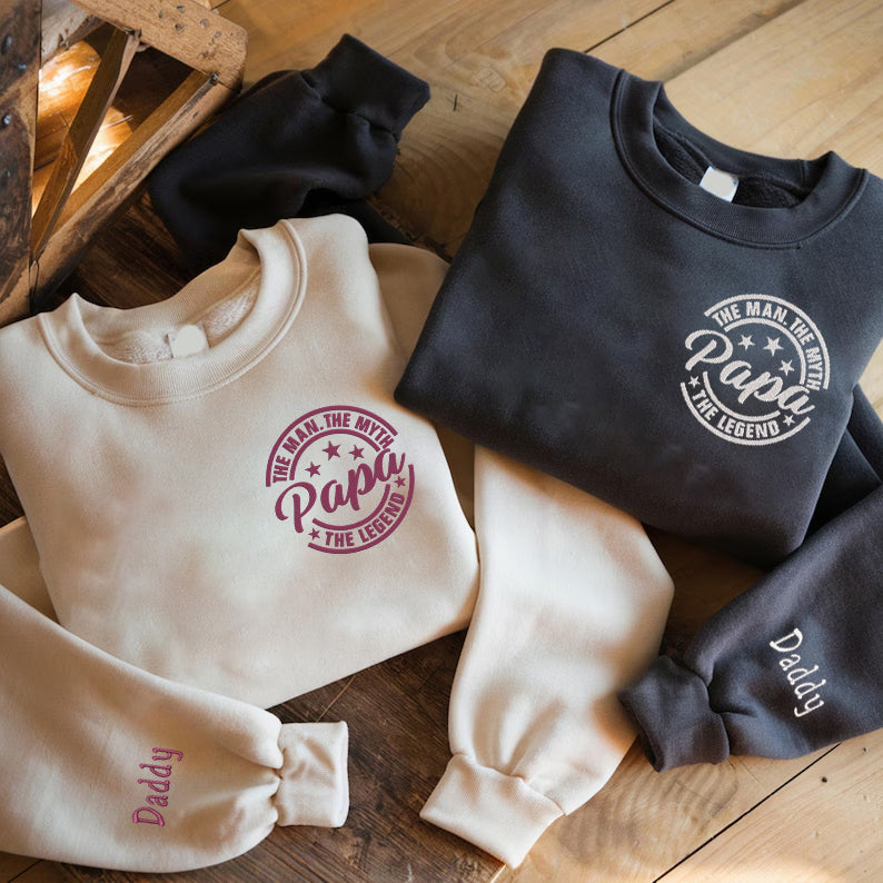 Father's Day Personalized Embroidered The Man The Myth The Legend Papa Hoodie Sweatshirt T-Shirt