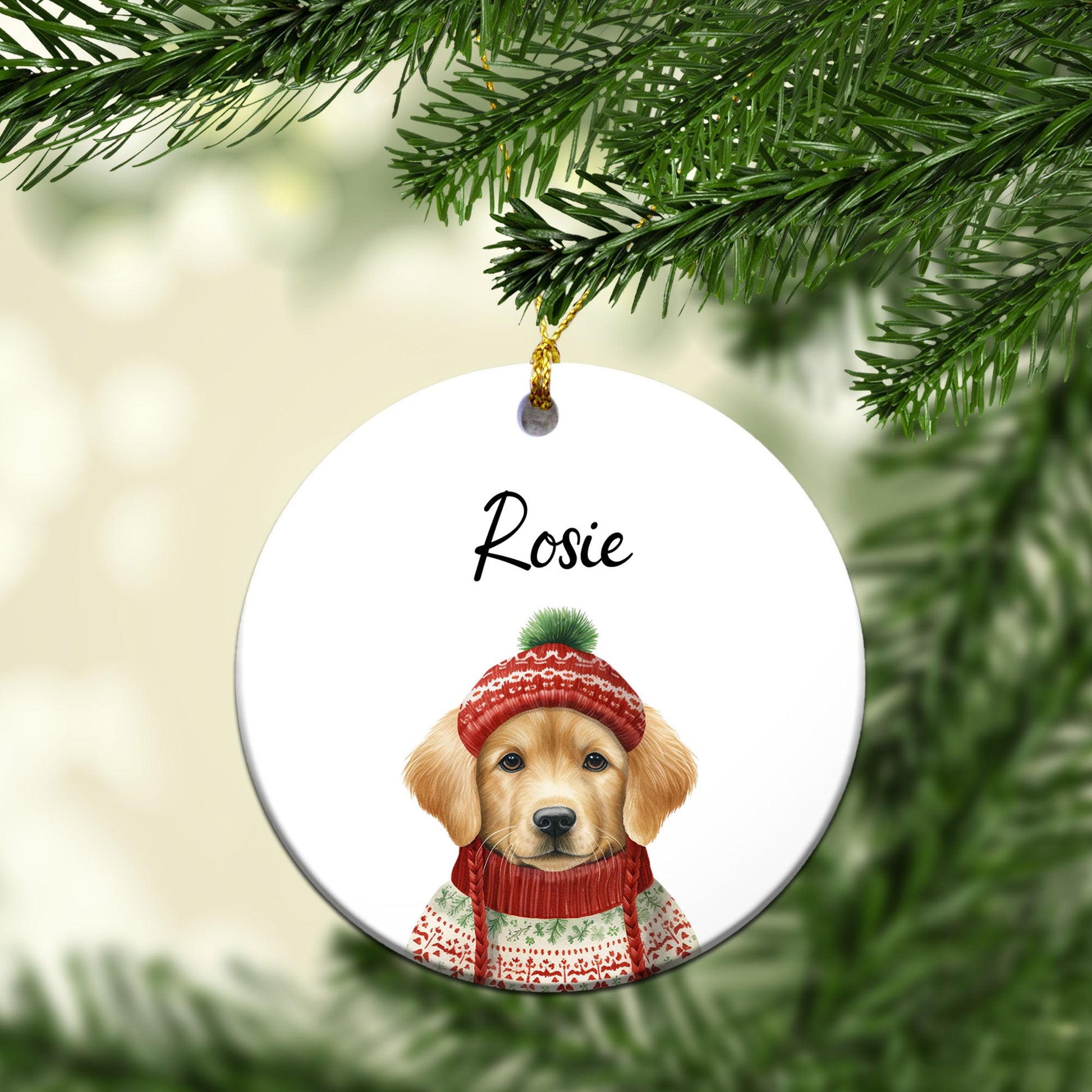 Personalized Pup In Ugly Sweater Custom Ceramic Ornament