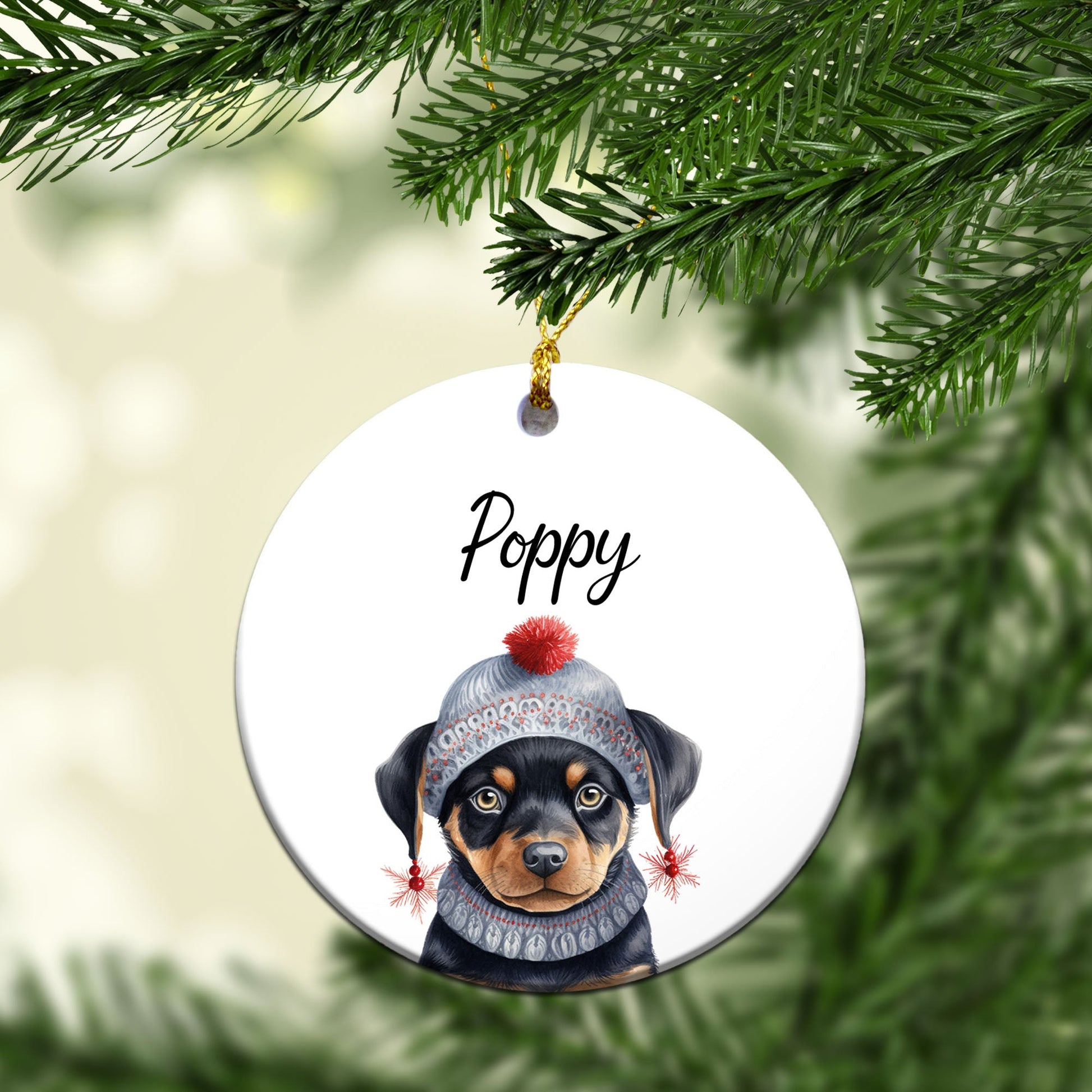 This personalized 2.9" round ceramic ornament is hand-made and is fully customizable.
